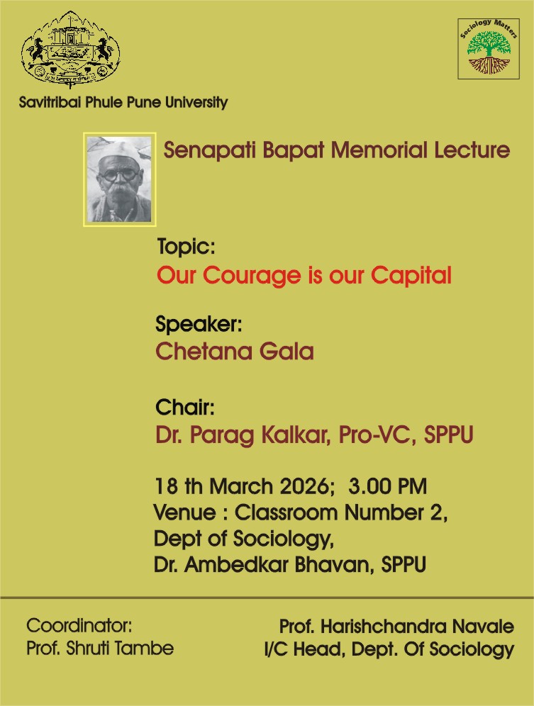New Senapati Bapat Memorial Lecture organized by Department of Sociology, on18 March 2026 (3.00 pm)