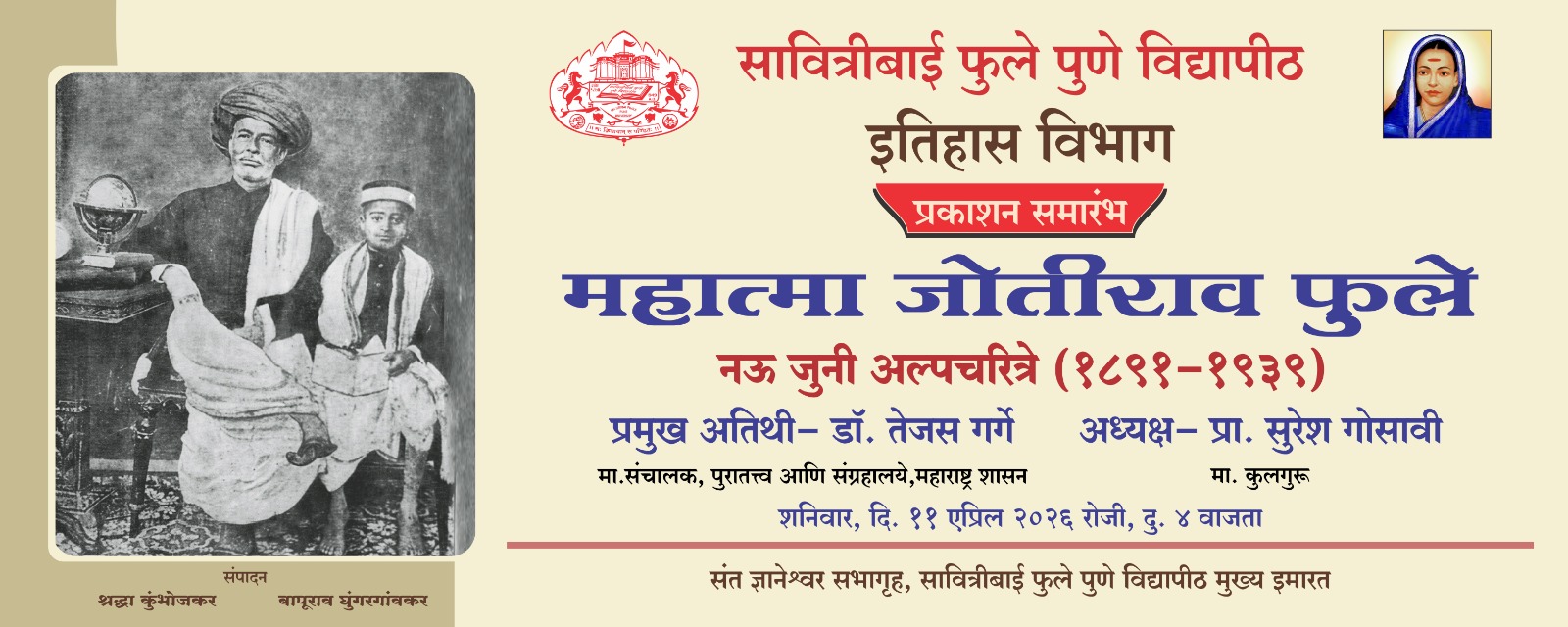 New इतिहास विभागातर्फे 'महात्मा जोतीराव फुले : नऊ जुनी अल्पचरित्रे (१८९१-१९३९)' या पुस्तक प्रकाशनासाठी निमंत्रण