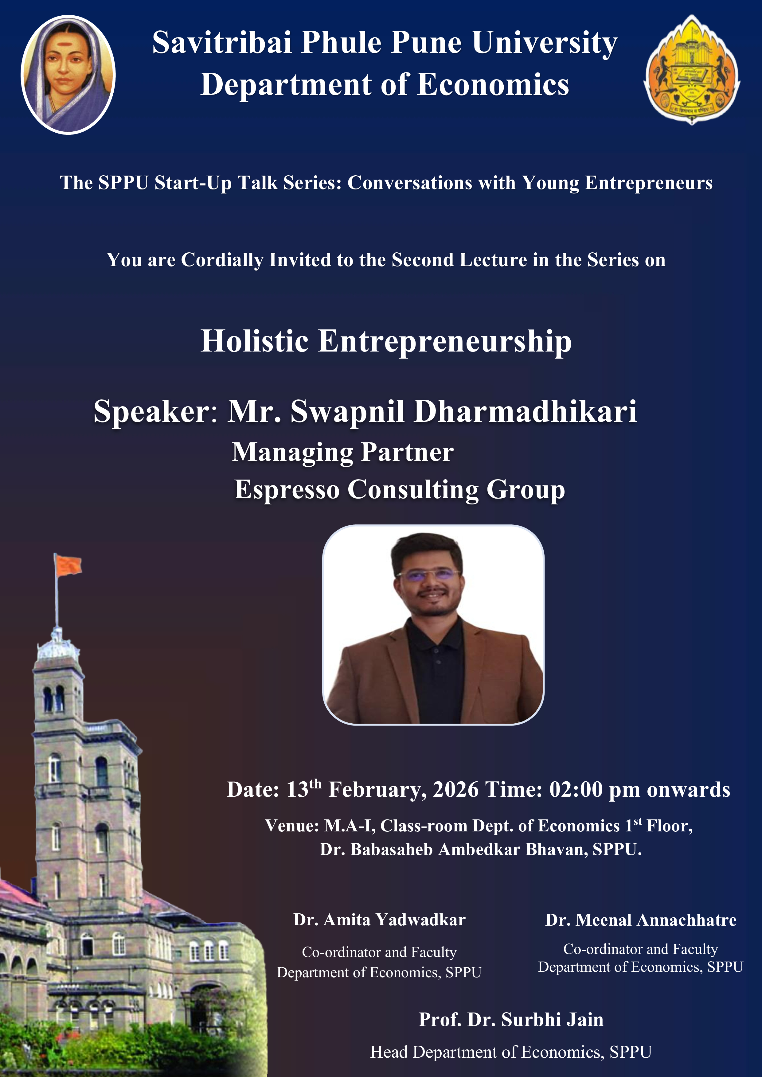 Department of Economics, SPPU organizes The SPPU Start-Up Talk Series: Holistic Entrepreneurship, 13th February, 2026.